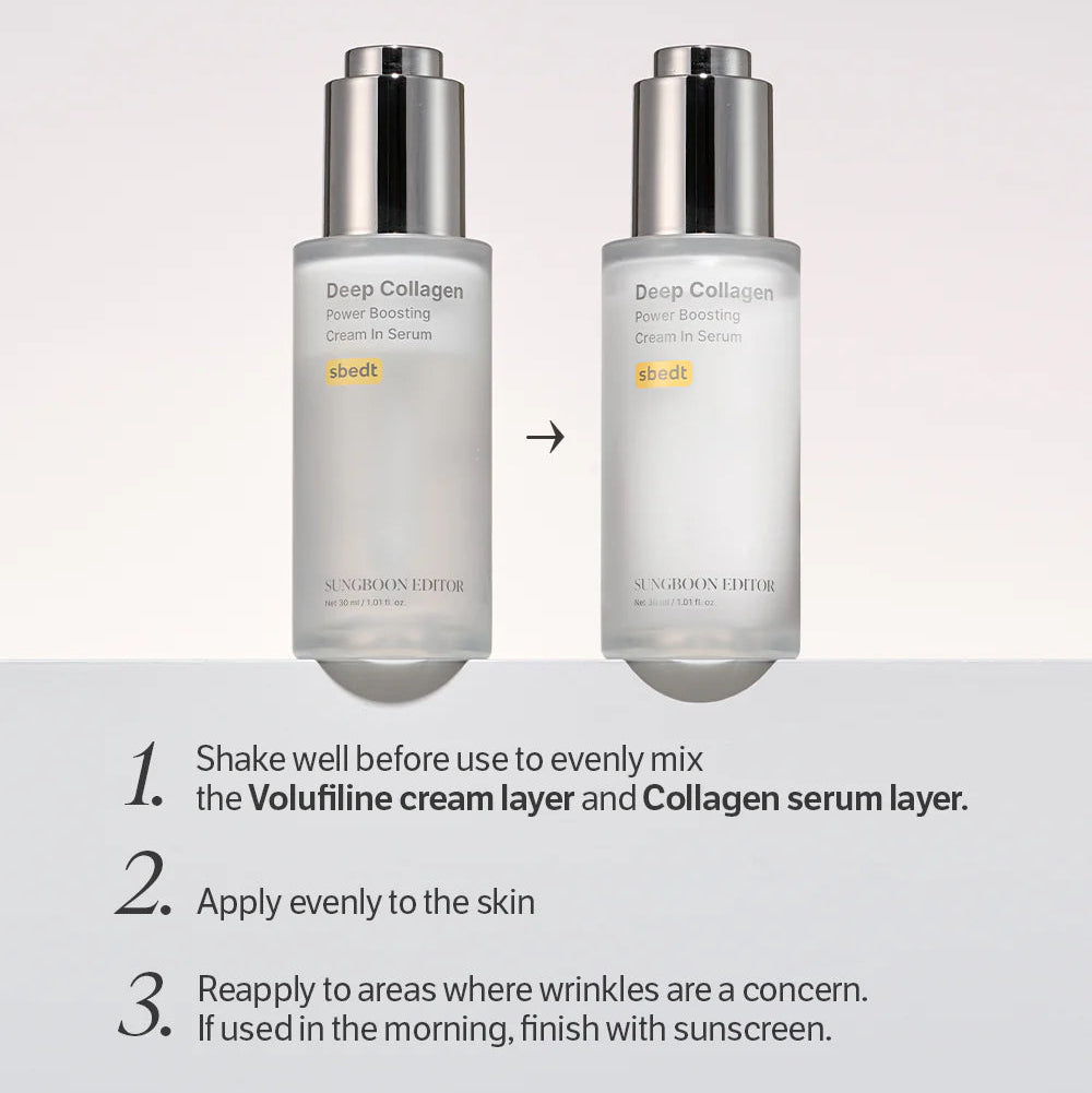 A hybrid cream-in-serum formula that delivers deep hydration and anti-aging care in one step. Powered by ultra-low molecular weight collagen that absorbs deeply into skin for improved elasticity and firmness, this unique dual-layer texture blends a serum’s potency with a cream’s comfort for plumper, more resilient skin. Shake to activate both layers before application.